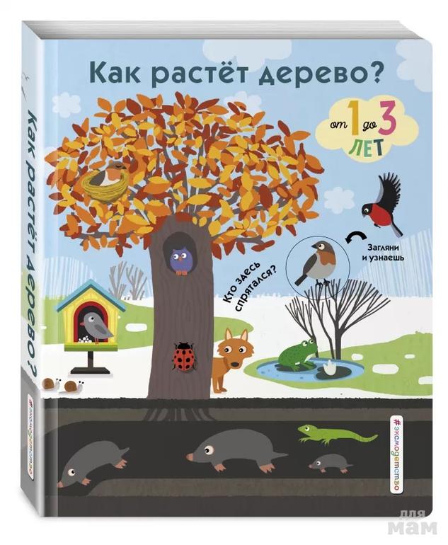Понаблюдайте за годом из жизни дерева - и узнайте о смене времён года! С этой книгой можно играть по-разному, она будет интересна каждому ребёнку. Здесь можно сочинять свои истории, рассматривая красочные картинки, говорить от лица персонажей со страничек и даже сочинять стишки к каждой маленькой зарисовке из жизни дерева. На каждой странице детали меняются - это превращается в увлекательную игру: найти и рассказать про того, кто смотрит на тебя из окошка!