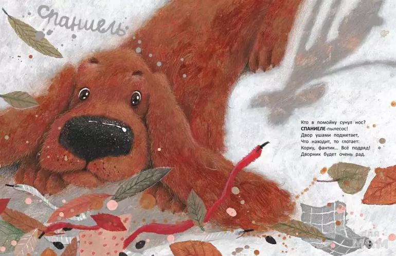 Книгу смело можно назвать собачьей энциклопедией в картинках, но при этом в ней есть сюжет. А в конце любители новых знаний найдут ещё и интересные факты про породы собак. Листайте, наслаждайтесь!