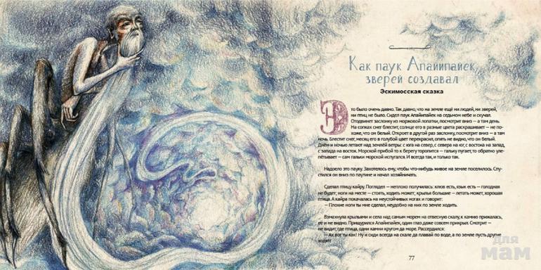 Волшебные и нежные, грустные и смешные сказки уносят наш караван то к Берингову проливу - там ворон поведает о своей любви к дикой гусыне, то в Японию, где оживают нарисованные чёрной тушью на белых стенах храма кошки. В Китае мы познакомимся с ящерицей, которая подарила подруге свою жемчужную слезинку. В Сибири нас ждёт бесстрашный заяц, рискнувший жизнью, чтобы спасти солнце, а в Северной Америке - лошадь, невзрачная на вид, от которой появились самые прекрасные на свете кони. Ну а в Мексике мы встретим пуму, подарившую птичке колибри великолепный разноцветный наряд.