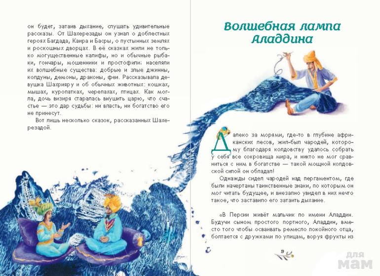 Тысячу и одну ночь рассказывала красавица Шахерезада удивительные истории царю Шахрияру. В её сказках жили не только могущественные калифы, добрые и злые джинны, феи и колдуны, но и обычные люди - рыбаки и гончары, мошенники и простофили. Сын портного Аладдин, нашедший волшебную лампу. Мальчик, сумевший по справедливости разрешить спор купцов. Сапожник Маруф, которому повезло встретится с великаном. Принц, взлетевший на небеса на чудесном деревянном коне, и Ахмед, женившийся на царице волшебниц. Бедняк Али-Баба и его служанка Марьяна, которым удалось справиться с шайкой разбойников. Все они - герои чудесных историй Шахерезады, о которых идет речь в этой книге.