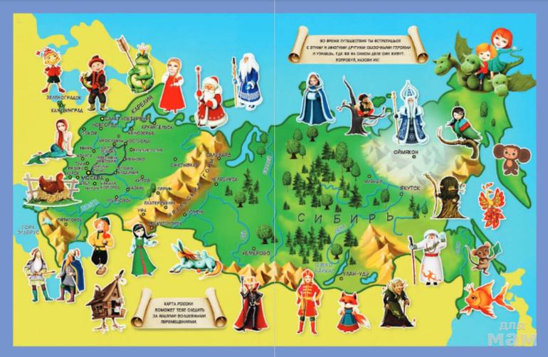Ориентироваться в нашей большой стране поможет красочная карта. В путеводителе вы найдете разнообразные задания и головоломки, с которыми узнавать о своей родине станет еще веселее.