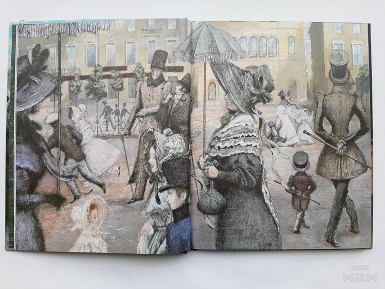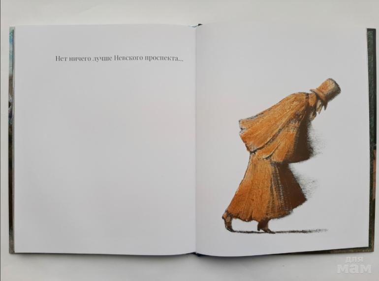 Эта книга — авторский проект замечательного петербургского художника Михаила Бычкова. «Нет ничего лучше Невского проспекта!» — восклицает гоголевский рассказчик в начале повести. Сердце и душа Петербурга: блистающий огнями и манящий причудливыми вывесками, соединяющий все слои столичного населения — таков Невский проспект, главный герой Н.В. Гоголя. Но нет и ничего иллюзорнее и обманчивее Невского проспекта. «О, не верьте этому Невскому проспекту!.. Все обман, все мечта, все не то, чем кажется!». Так рисуется образ городского пространства, своеобразно объединяющего людей: оказавшись рядом, они по-прежнему разобщены и заняты своими делами. Игра света и тени, причудливое сочетание фантастики и реальности — эти особенности гоголевской манеры тонко прочувствовал Михаил Бычков и передал в цикле иллюстраций к повести.