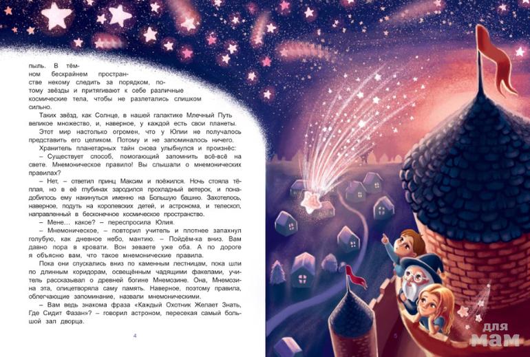 Принцесса Юлия выучила названия всех планет Солнечной системы, но всё время забывала их порядок. Астроном, генерал, другие придворные и даже король с королевой взялись ей помогать и придумывать подходящие правила - такие фразы, в которых все слова начинаются с тех же букв, что и планеты в нужном порядке. Очень скоро Юлия всё запомнила, и это оказалось совсем не трудно.
