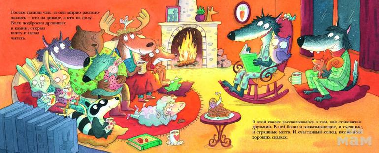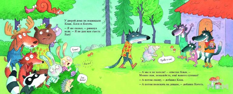 Волк и овечка были друзьями и даже жили под одной крышей. Но обитатели леса в эту дружбу не верили. Они считали, что у волка к овце может быть только один интерес и рано или поздно он ее съест. Как-то раз овечка пригласила гостей, но ее друзья кролики, испугавшись волка, не пришли к ним пить чай с морковными кексиками. Тогда волк позвал своих друзей. Волки Клык, Клок и Коготь не заставили себя долго ждать и тотчас примчались. Правда, они-то рассчитывали полакомиться рагу из ягнятины, а им подали овощной суп, потом угостили доброй сказкой, а потом разрешили поспать на диване до самого утра. И самое удивительное, что волкам все это пришлось по вкусу. Но когда зубастая троица опять явилась в гости к волку и овечке, лесные звери решили, что овечку пора спасать. Под покровом ночи они ворвались в дом, но увидели, что овечке ничто не угрожает. Оказалось, что даже в самой разношерстной компании может царить мир и согласие.