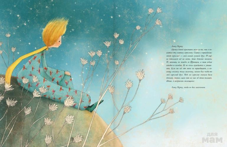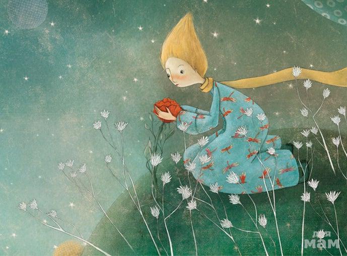 Покинув свой родной астероид Б-612, Маленький принц отправляется в путешествие, чтобы "найти занятие да поучиться чему-нибудь". Для современной итальянской художницы Мануэлы Адреани не важны конкретные детали его странствий и мест, куда попадает Маленький принц. Зато жители разных планет, с которыми встретится герой знаменитой истории Антуана де Сент-Экзюпери, удивительны. Они застыли в сложных ракурсах: вытягивают и заламывают руки, резко наклоняются, становятся на колени… Да и наряды их весьма необычны, сплошь покрыты орнаментом. Сам Маленький принц одет в свободный голубой комбинезон, украшенный красными стрекозами. Глядя на стрекозу, невольно задумываешься: жизнь так быстротечна, что не следует превращать её в унылую действительность. Маленький принц - странник, ищущий скрытый смысл вещей и человеческой жизни, - понимает эту истину как никто другой.
