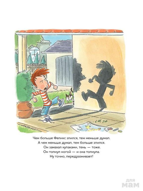 Разве можно поссориться со своей тенью? А вот с Феликсом произошло именно это. Он ужасно рассердился на неё - тень мешала ему рисовать. И, прогнав её, Феликс обрадовался, что теперь никто его не преследует. Но когда он однажды нашёл умирающую от жары маленькую птичку, мальчик захотел защитить её от солнечных лучей своей тенью. А тени у него не было…