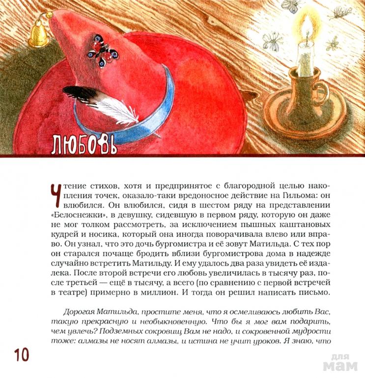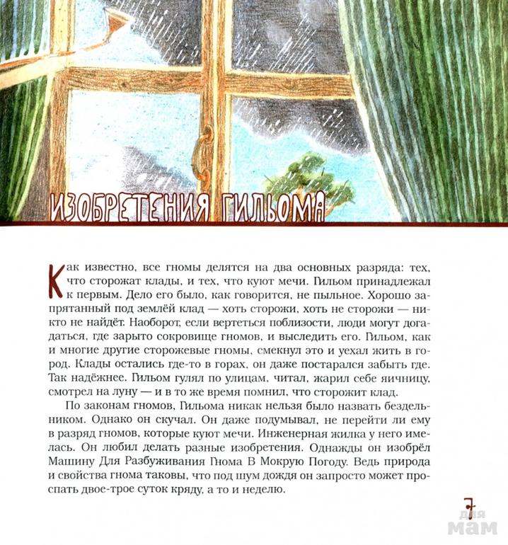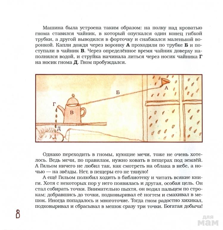 Как известно, все гномы делятся на два разряда; тех, что куют мечи, и тех, что сторожат клады. Гном Гильом тоже сторожит клад, но где и какой — он забыл. Уж таков этот гном. У него мечтательный характер: он любит делать всякие изобретения, читать и смотреть на луну. Однажды он влюбился — прямо с первого взгляда, но эта любовь не принесла ему счастья. Зато ему удалось достать с Луны котёнка, с которым они стали неразлучны. Хотя их и пытались разлучить. Но у Шльома есть друзья, готовые прийти на помощь: аптекарь Валерьяныч, княгиня Розина и доблестный пожарник Жардым Ударов. А ещё в этой сказке есть пиратский попугай, счастливый конец и эпилог, написанный гекзаметром.