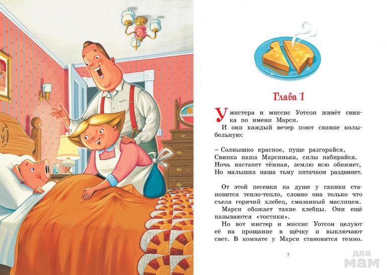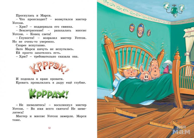 У мистера и миссис Уотсон живёт свинка по имени Марси, которая больше всего на свете любит тостики с маслицем. Эта весёлая и неутомимая озорница просто обожает проказничать – то посреди ночи учинит дома настоящий погром, то вдруг ей вздумается прокатиться на автомобиле и даже порулить, а однажды она нарядилась принцессой и устроила в округе переполох, загнав на дерево грозного кота по кличке Генерал Вашингтон…