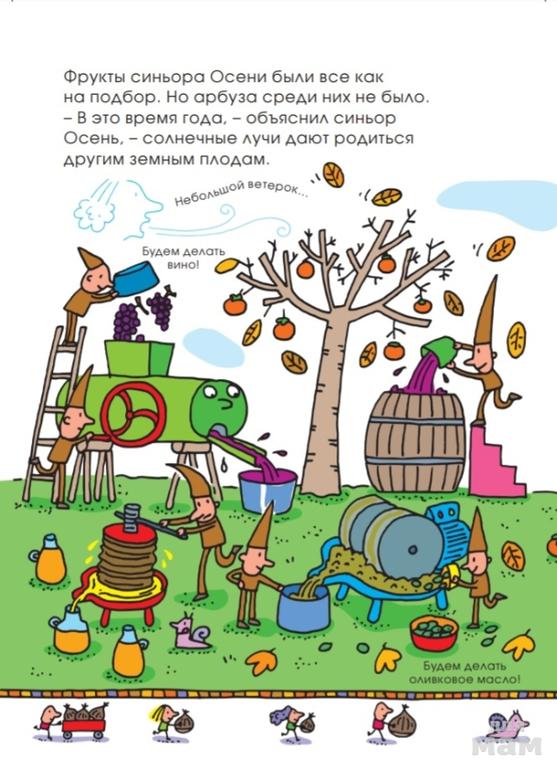 Клювик и Рыжик, друзья синьора Капельки, побывали в гостях у всех времен года. Они узнали, как времена года сменяют друг друга, увидели, что у каждого времени года свои плоды, и разобрались почему так происходит.