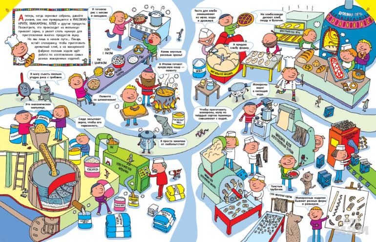 Откуда берутся все вкусные вещи в наших тарелках, как они попадают на нашу кухню? Сколько разных блюд можно приготовить из риса? Кто ловит рыбу, кто собирает фрукты? И сколько разной работы нужно сделать, чтобы в наших тарелках оказалась пицца с сыром или каша с маслом? Узнаем это вместе с нашим другом поварёнком Фуди, который возьмет нас в своё весёлое и интересное путешествие в мир еды и продуктов. Познавательная книга в стиле виммельбух поможет родителям и детям провести время весело и с пользой, читая несложные тексты и рассматривая картинки.