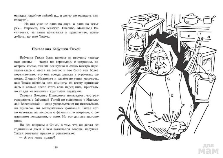Фимка – очень умный и абсолютно бесстрашный пятиклассник – увлечен изысканиями в области муравьиной жизни. Он придумал «уменьшительные» пилюли и пробрался в муравейник, чтобы подтвердить свои научные предположения. Вслед за ним, тоже под воздействием волшебного «уменьшительного» средства, в муравейник отправилась «пёстрая» компания: следователь Людвиг Иванович и соседки мальчика: импозантная старушка Матильда Васильевна, ее внучка, любознательная дошкольница Анюня, или Нюня, и, пожалуй, самый оригинальный персонаж книги старушка по фамилии Тихая.