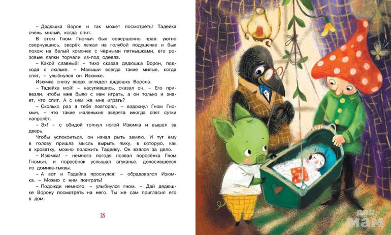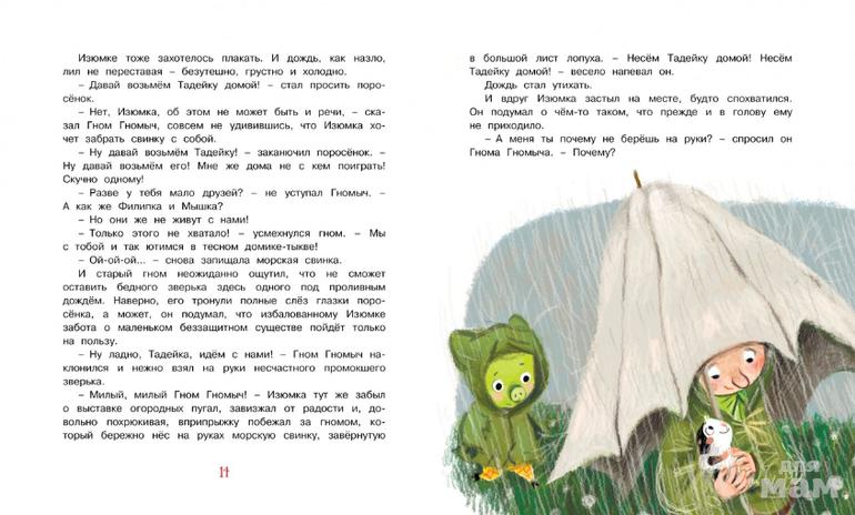 В этой весёлой, доброй книге вас ждёт новая встреча с любимыми героями сказок венгерской писательницы Агнеш Балинт – зелёным поросёнком Изюмкой и Гномом Гномычем. Изюмка по-прежнему шалит и не слушается, а Гном Гномыч учит его уму-разуму. И хотя Изюмка доставляет гному немало хлопот, он нежно любит этого упрямого непоседу. А когда в их домике-тыкве появляется ещё и маленькая морская свинка по имени Тадейка, гному приходится призвать на помощь всю свою смекалку.
