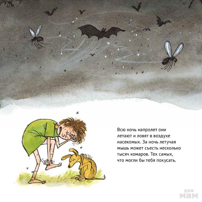 Ты наверняка знаешь, что летучие мыши спят, повиснув вниз головой, и вылетают на охоту с наступлением темноты. А известно ли тебе, что летучие мыши умеют петь и съедают за ночь тысячу комаров?