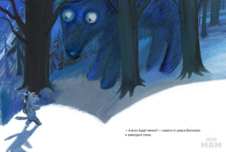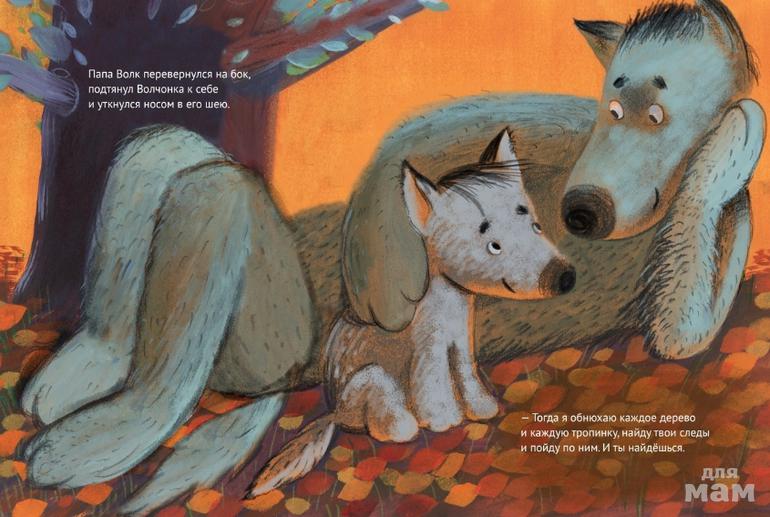 Маленький Волчонок больше всего на свете боится потеряться. Сможет ли папа его найти, если будет темно или дождь смоет все следы? А когда ты чего-нибудь боишься, развеять страхи поможет тот, кто тебя любит.