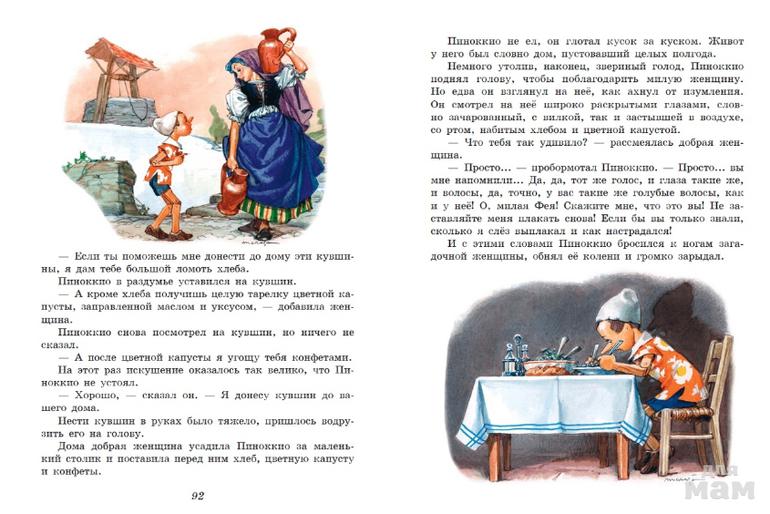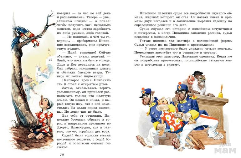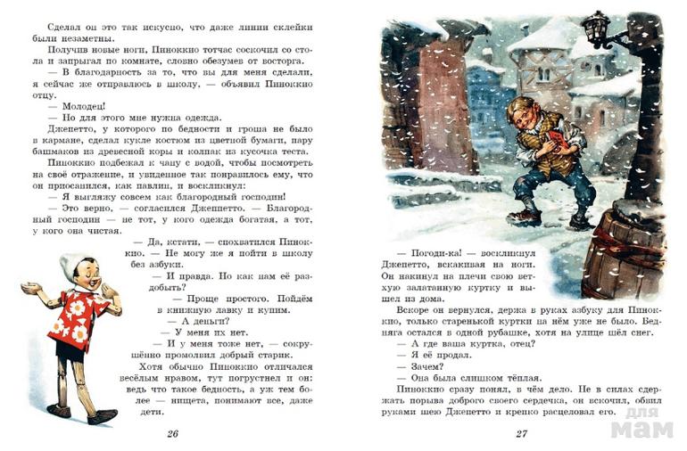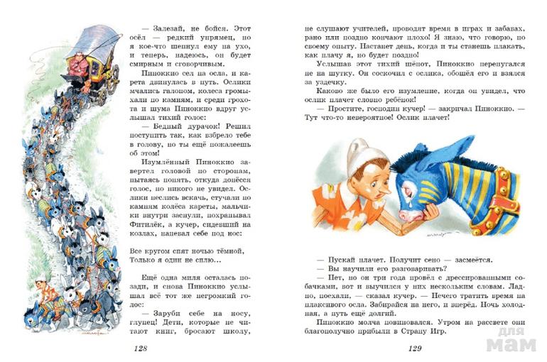 Книга "Приключения Пиноккио" Карло Коллоди уже давно стала национальным достоянием Италии, и её тиражи занимают лидирующие строчки не только среди детских, но и среди взрослых книг, а сюжет сказки лёг в основу многих художественных фильмов. Это история деревянной куклы, сделанной из говорящего полена, которая научилась быть человеком. За детским сюжетом угадывается сложная проблема взросления, а сказочные обстоятельства приключений Пиноккио, его поведение, встречи и непростые решения научат читателя принимать ответственность за поступки, отличать правду от лжи. Чтение этой великолепной книги неизменно приносит радость детям и взрослым. Иллюстрации итальянского художника Либико Марайя, которого заслуженно называют "Мастером Образа".