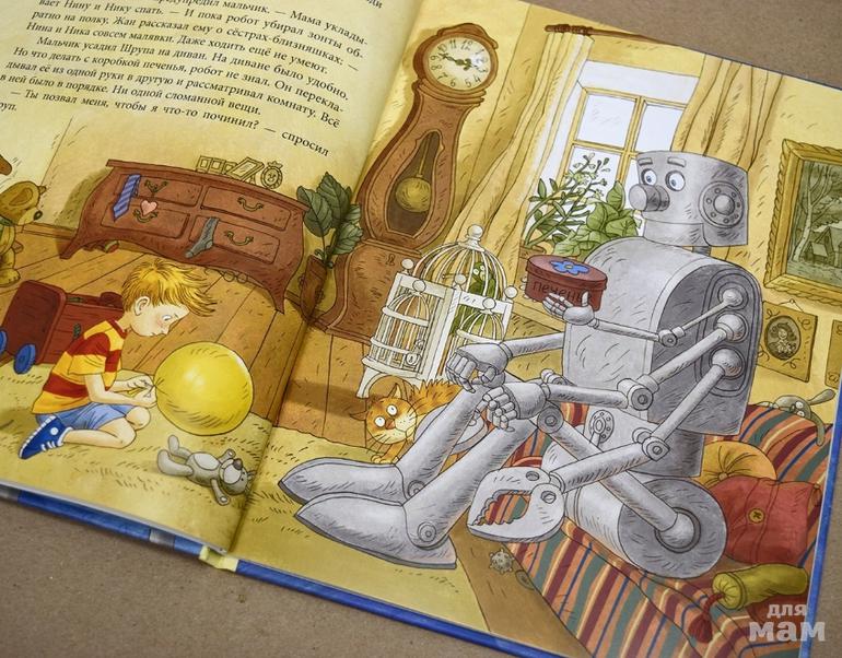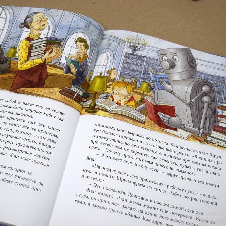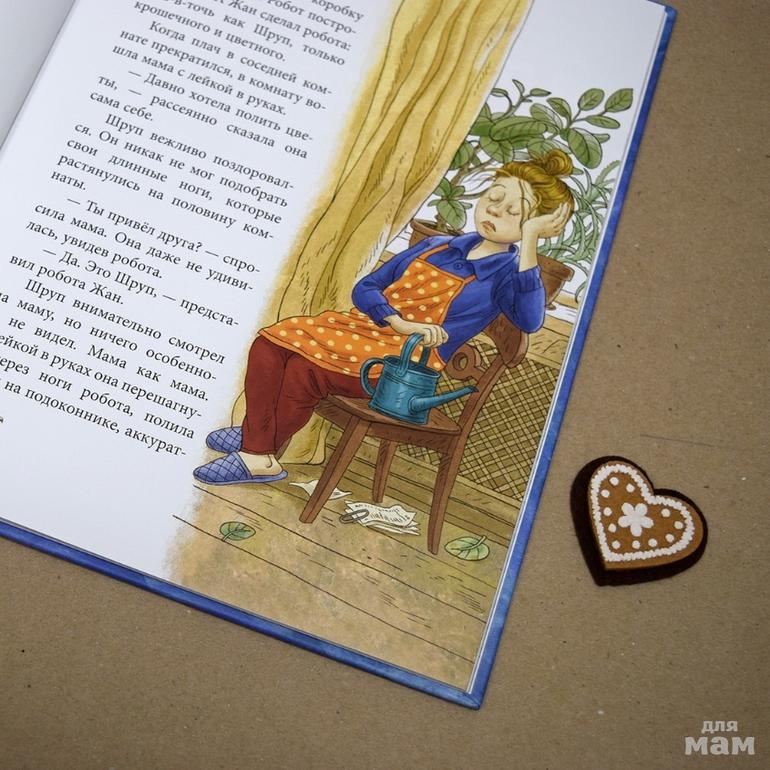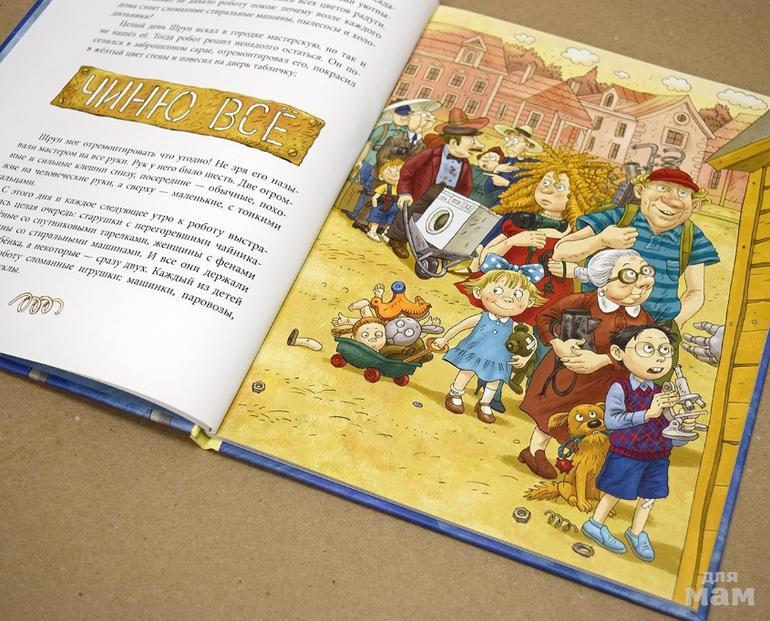 Робот Шруп - мастер на все свои шесть рук: он может починить что угодно! Будь то сломанная стиральная машинка, переставший включаться чайник или потерявшая голову кукла. Но однажды и для Шрупа находится по-настоящему трудная задача: мальчик Жан просит починить его маму! Роботу предстоит выяснить, как мамы устроены, завести дневник наблюдений за тысячью разных мам, вывести формулу светящейся мамы и, наконец, совершить великое открытие: чтобы починить маму, нужно сделать ее счастливой! И тогда Шруп и Жан придумывают блестящий план.