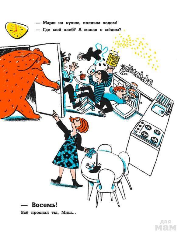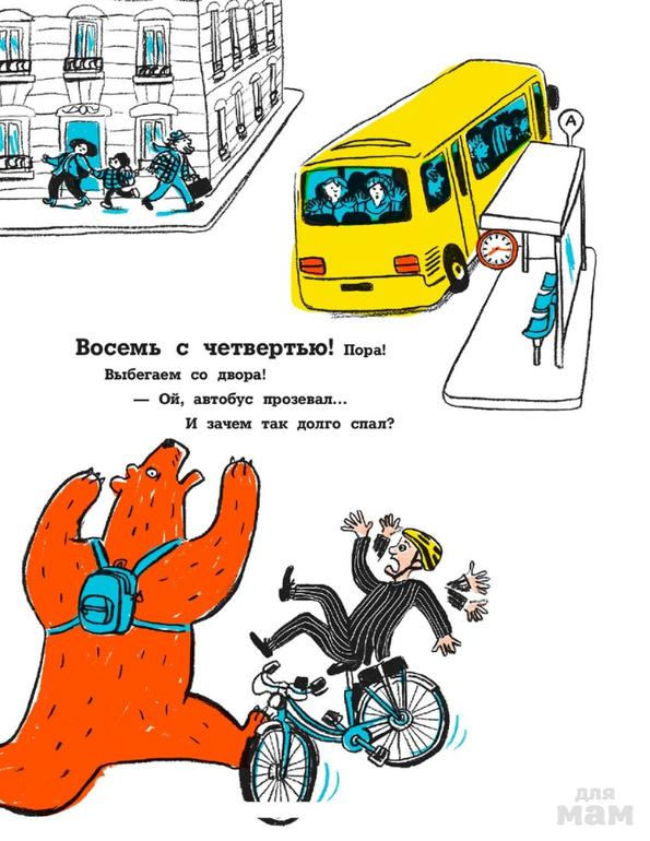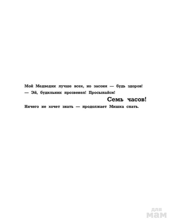 Эта забавная история о медведе не только рассмешит взрослых, но научит детей в игровой форме правильно определять время. В книге есть познавательные уроки от папы, который учит медведя всегда приходить вовремя и заранее все планировать. История написана с юмором, в стихах - это позволит ребенку быстро запомнить уроки и повеселиться над приключениями главного героя. Перевод и рифмы замечательной Аси Петровой.