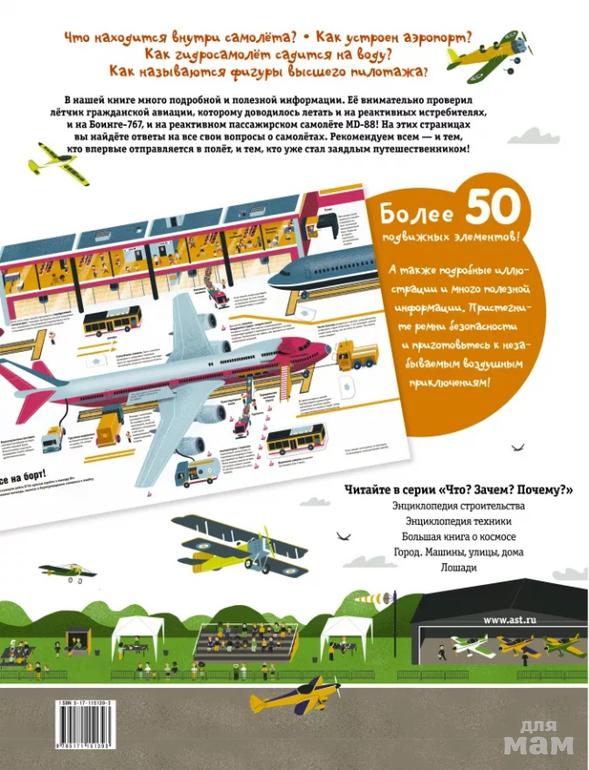 Что находится внутри самолëта? Как устроен аэропорт? Как гидросамолëт садится на воду? Как называются фигуры высшего пилотажа? В нашей книге много подробной и полезной информации. Ее внимательно проверил летчик гражданской авиации, которому доводилось летать и на реактивных истребителях, и на Боинге 767, и на реактивном пассажирском самолëте MD-88! На этих страницах вы найдете ответы на все свои вопросы о самолётах. Рекомендуем всем — и тем, кто впервые отправляется в полëт, и тем, кто уже стал заядлым путешественником!