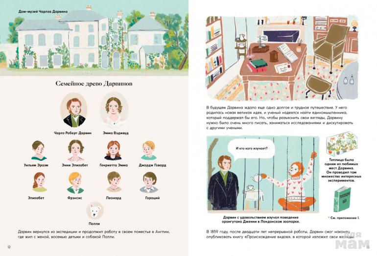 В 1859 году Чарлз Дарвин, английский натуралист и биолог, написал книгу «Происхождение видов», в которой объяснил процесс эволюции различных видов животных. Идеи Дарвина актуальны до сих пор, и благодаря иллюстратору Сабине Радевой теперь доступны и юным читателям.