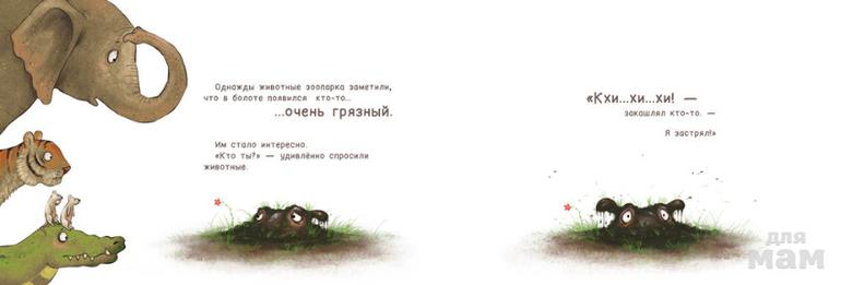 Кто-то застрял в болоте. Все животные зоопарка спешат на помощь: и большие, и совсем крошечные. Но им все равно не обойтись без маленького читателя. Потряси книгу, чтобы узнать, что же случилось дальше!