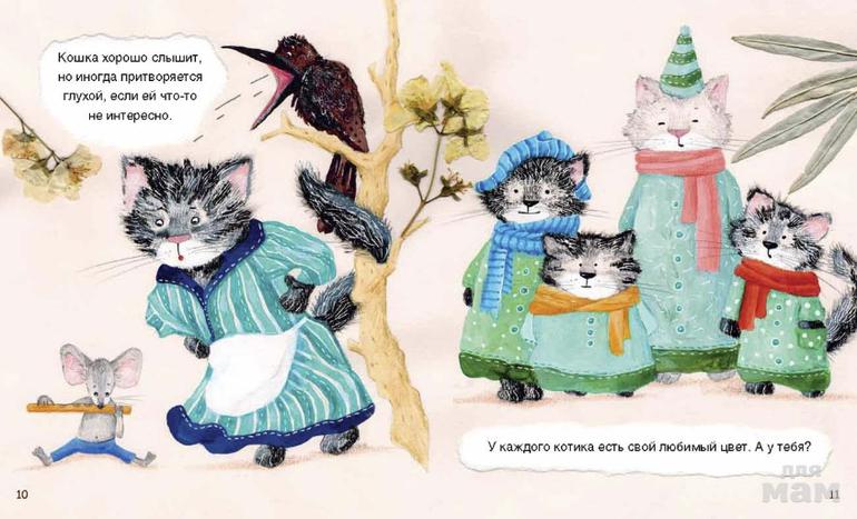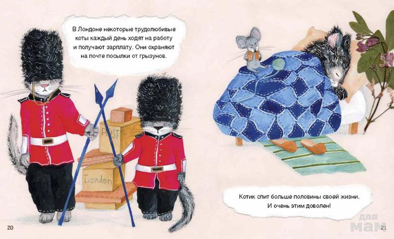 Художник Анна Юдина собрала и проиллюстрировала познавательные и трогательные факты о котиках. Дети узнают, зачем коту усы, сколько разных "мяу" в его словарном запасе, что хочет сказать кот, когда машет хвостом из стороны в сторону, на какую высоту кошка может прыгнуть, и как устроена жизнь бездомных котов.