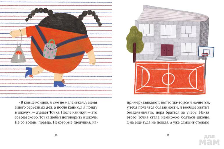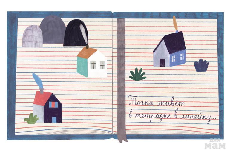 Точка живёт в тетради в линейку, и хочет, когда вырастет, стать точкой над «i». Ну а пока что она любит кувыркаться, висеть вниз головой на верхней линейке и играть с весёлой кудлатой Ошибкой, которая забрела когда-то на их страницу.