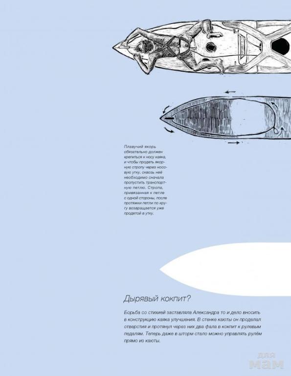 «Солнце жарит. Думаешь, приятно, наверное, было бы искупаться в тёплом океане? Наверняка, да? Так думал и Александр, вспотев от непрерывной гребли. Он и выжимал над головой губку, и поливался океанской водой, но это не очень-то помогало. Пришло время броситься в пучину!