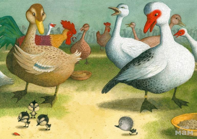 До чего хорошенькие вылупились утята у матери-утки! Все, кроме одного- Бедняга был до того огромен и неуклюж, что птицы сразу его невзлюбили. Пришлось утёнку покинуть привычный птичий двор и отправиться куда глаза глядят. Много разных людей, зверей и птиц повстречал утёнок в своих странствиях и не раз сталкивался с опасностью. Так миновала суровая зима, а когда наступила весна, она принесла утёнку много радости - он наконец нашёл свою родную стаю, верных друзей и настоящее счастье