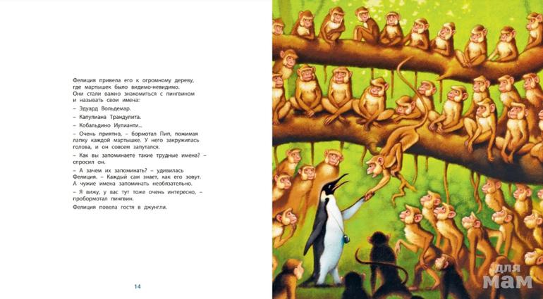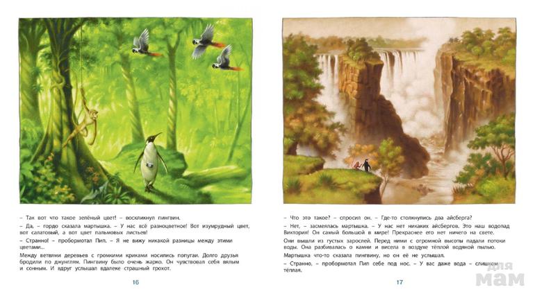 Весёлая и красочная книжка рассказывает о том, как подружились пингвин и мартышка. Дружить им непросто: пингвин любит холод и белые льды, а мартышка – жару и зелёные джунгли. Всё у них дома устроено по-разному, и поэтому приятели не перестают удивлять друг друга. История этой необычной дружбы поможет маленькому читателю понять, что родной дом – самое замечательное место на земле, и что мир, в котором мы живем, так многообразен и в нем так много интересного!