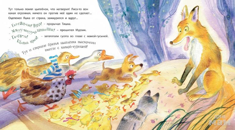 Яшка родился на деревенском дворе. И был он самым обычным цыплёнком. Вот только он ни с кем не хотел дружить, а больше всего на свете любит драться да задираться. Наверное, так бы и вырос Яшка драчуном и хулиганом, если бы однажды не заглянула к ним во двор лиса… Все закончилось хорошо – лису прогнали, а задиристый Яшка полностью перевоспитался!