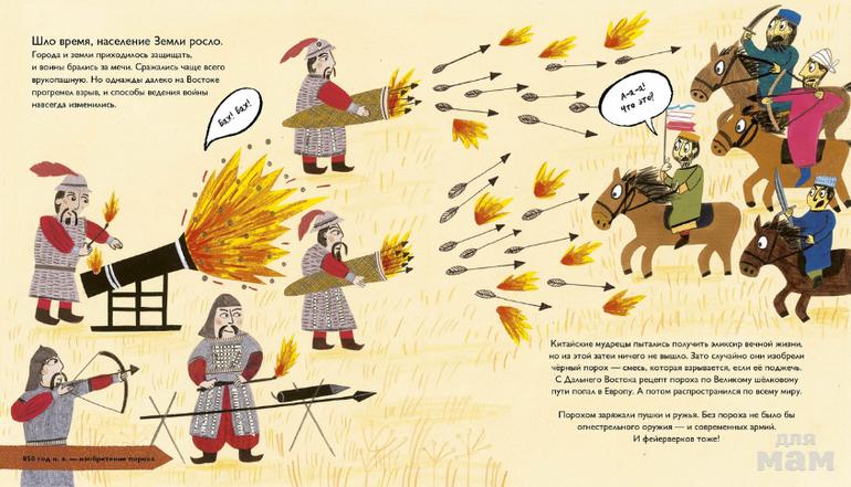 Учёные и педагоги Кэтрин Барр и Стив Уильямс объясняют историю изобретений кратко, наглядно и понятно даже дошкольнику. А иллюстратор Эйми Хасбанд рисует важнейшие открытия и их авторов в наивной детской манере.