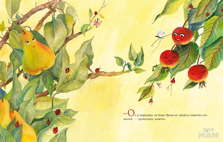 Это история для самых маленьких читателей. Сказка о спелой груше, яркой черешне, сладкой малине, сочной сливе и… обиженной на всех, кислой и ворчливой ранетке. Из-за терпкого вкуса она оказалась совершенно никому не нужной. Снедаемая завистью, ранетка принялась пугать грушу страшными историями.