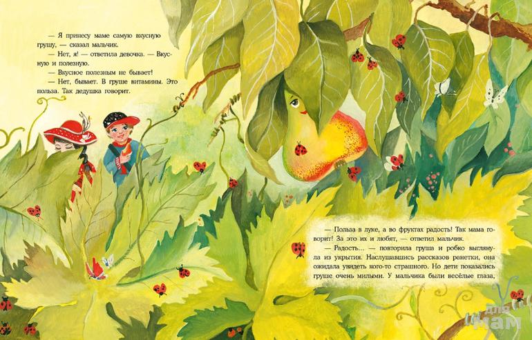 Но, в конце концов, груша поняла, что самое главное в жизни — делать что-то для других. Она не побоялась быть сорванной, потому что знала, что принесет пользу и радость.