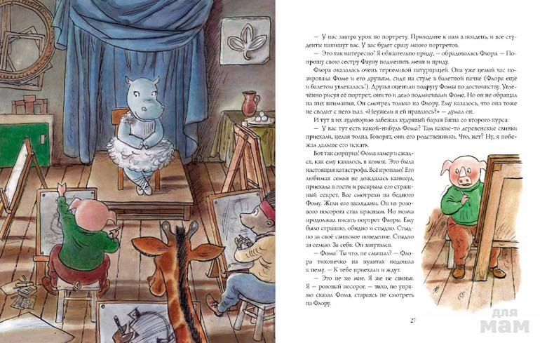 У симпатичнейшего героя этой истории, поросёнка Фомы, с детства был талант к рисованию. Он-то и привёл его из родных Больших Грязищ в город, в саму Академию художеств. А в городе жизнь совсем другая, суматошная, и свинок здесь почему-то не очень жалуют… Но славный характер, доброе сердце и новые друзья помогли Фоме разобраться в сложных вопросах, а главное — остаться собой.