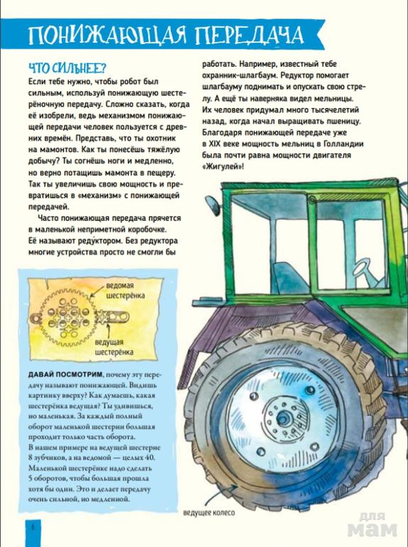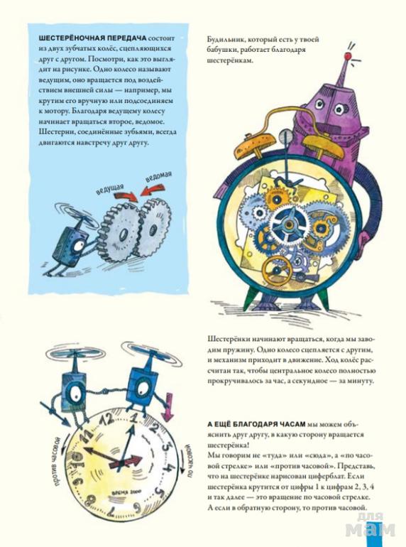 Книга создана профессиональными инженерами, которые ведут курсы Лиги Роботов. Все сложные технические определения адаптированы для детей. Для объяснения используются привычные предметы: будильник, миксер, банкомат и т. п. Внутри масса увлекательных заданий и головоломок. Прочитав книгу, любой сможет не только понять, как устроены механизмы вокруг, но и собрать своего робота.
