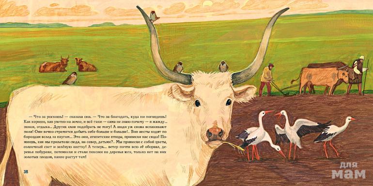 Однажды один старый воробей заметил, что Новый год наступает с приходом весны. А весна приходит, когда прилетают аисты. И вот приходит весна, а вместе с ней два аиста приносят на своих спинах детей - мальчика и девочку. Дети растут, и природа оживает, наполняясь силами. Распускаются цветы, зеленеют рощи, солнце согревает землю... Наступает лето, юноша становится статным мужчиной, а девушка - прекрасной женщиной, его женой. Наливаются соком плоды, желтеют хлебные колосья... Наконец леса одеваются золотом, наступают холода, и жена повелителя года уходит на покой. А сам он, теперь седовласый старик, укрывает землю снегом и смотрит вдаль с высокого холма, терпеливо ожидая прихода новой четы...