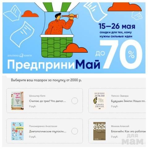 За каждую покупку на 2000 рублей дарят одну из четырех книг на выбор: