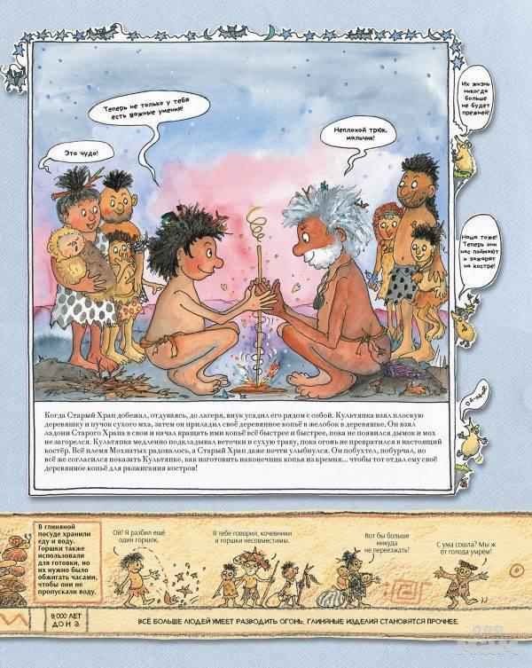 В этой книге читателей ждёт настоящее доисторическое приключение – знакомство с первыми людьми на Земле, из племени Мохнатых. Вы узнаете, как Мохнатые выживали во времена ледникового периода, как впервые добыли огонь, как из кочевников превратились в земледельцев и одомашнили диких животных. Занимательные факты, шутки и любимый детский формат – комиксы – делают эту книгу великолепным пособием по истории человечества.