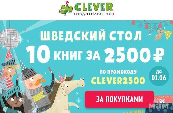 CLEVER2500 - 10 книг за 2500р по промокоду и при оплате заказа картой на сайте , по 1 июня