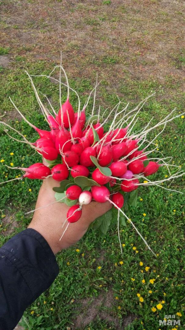 Вчера муж собрал "букетики", погода прохладная - все, как любит редис, вкусная....