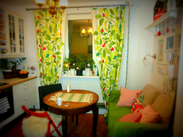 Посмотрите как в зависимости от времени года и настроения самой хозяйки меняется кухня. Непременно еще напишу о ее квартире, а пока проходите на кухню.