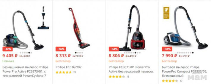 Супер скидки на пылесосы Philips. Скидки до 42%