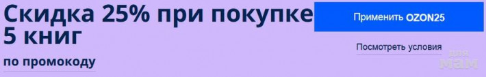 OZON25 — скидка 25% на книги при покупке 5 книг → Скидка 25% на книги по промокоду OZON25