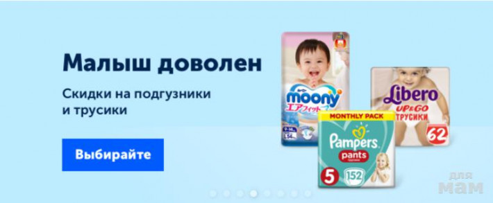 Скидки на подгузники и трусики -52%