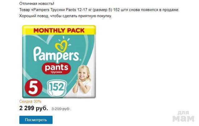 Ozon - товар «Pampers Трусики Pants 12-17 кг (размер 5) 152 шт» снова появился в продаже.