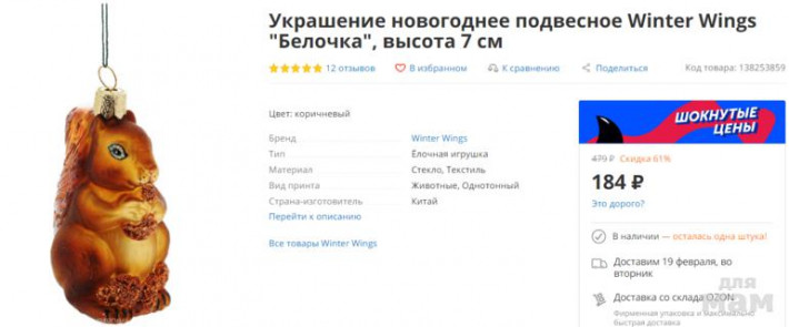 Украшение новогоднее подвесное Winter Wings "Белочка" -61%Остальные игрушки Winter Wings из СТЕКЛА