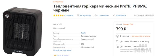 Тепловентилятор керамический Proffi, PH8616 -78%