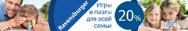 скидка 20% на пазлы и настольные игры для детей и взрослых от старейшего немецкого производителя, компании Ravensburger.