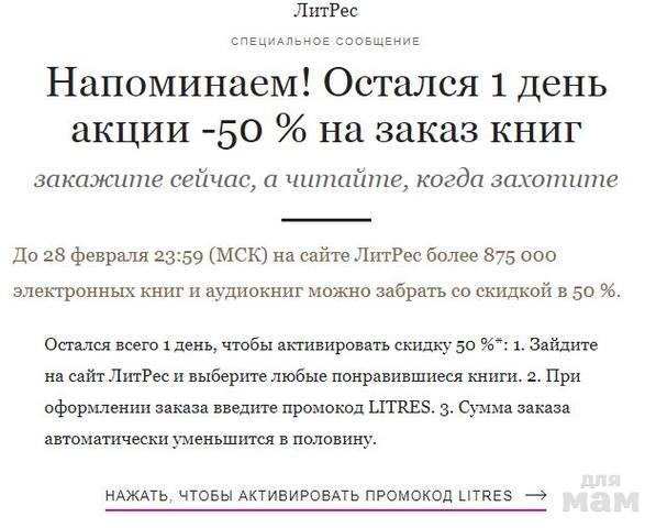 Введите промокод и получите скидку 50% с 1 января 2018. Количество книг в корзине не ограничено. Промокод действителен 3 дня с момента активации.