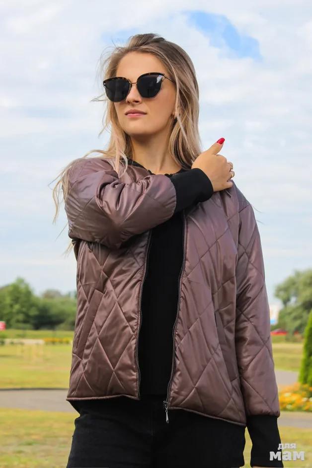 Укороченная, стеганая куртка на синтепоне, спинка слегка удлиненная, рукав на высоком манжете.